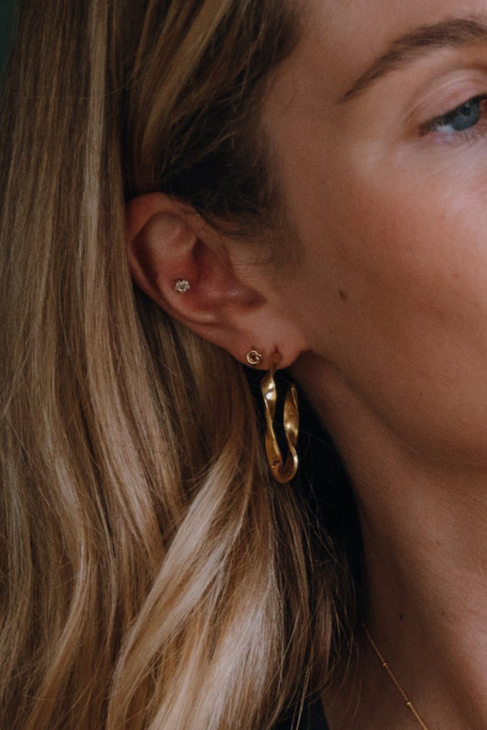 My earrings are made by hand in England using eco friendly traditional and modern methods, using recycled metals of eco sterling silver and 18k gold vermeil. All packaging is recycled / recyclable and plastic-free, so our jewellery looks beautiful, whilst keeping the planet in mind.