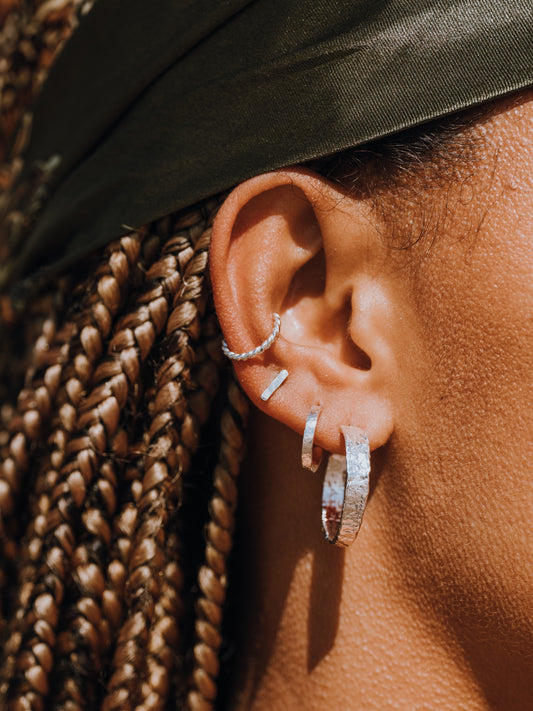 Sterling Silver Mini Hoop and Bar Stud Set Earrings
