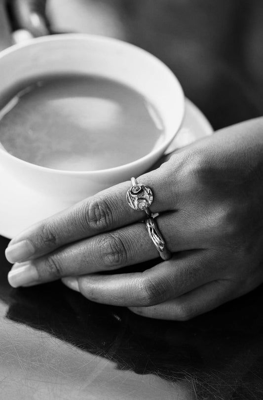 My rings are made by hand in England using eco friendly traditional and modern methods, using recycled metals of eco sterling silver and 18k gold vermeil. All packaging is recycled / recyclable and plastic-free, so our jewellery looks beautiful, whilst keeping the planet in mind.