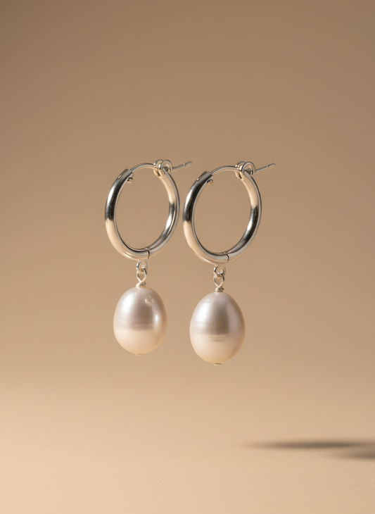 Timeless Sterling Silver Hoop & Freshwater Pearl Earrings