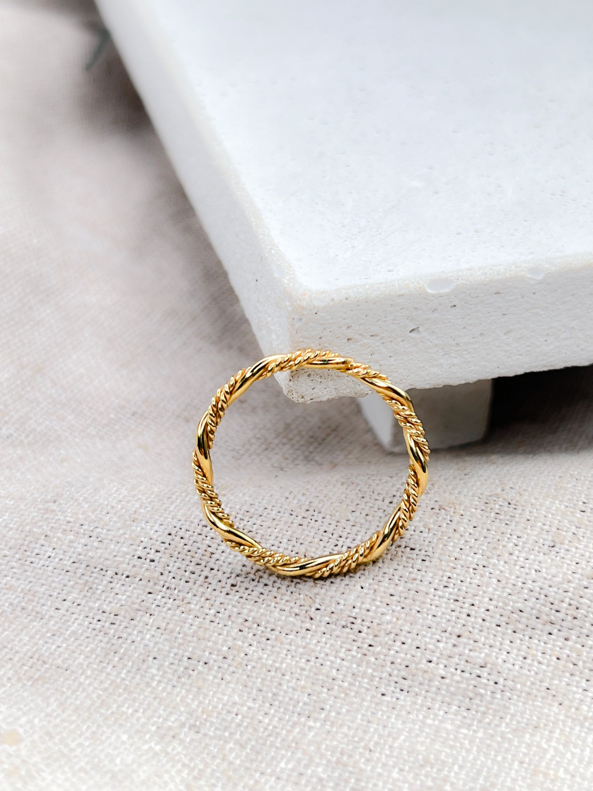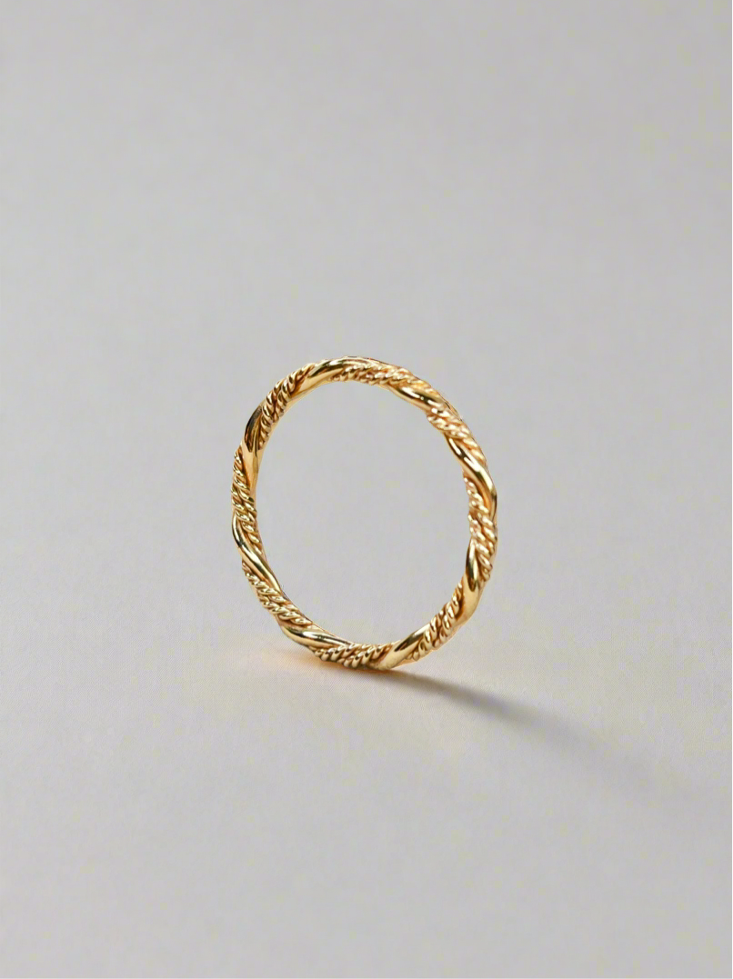 A super pretty twist band ring using both smooth sterling silver wire and spiral sterling silver wire twisted together to form a unique ring look. This design looks lovely worn alone or stacked with multiple rings.