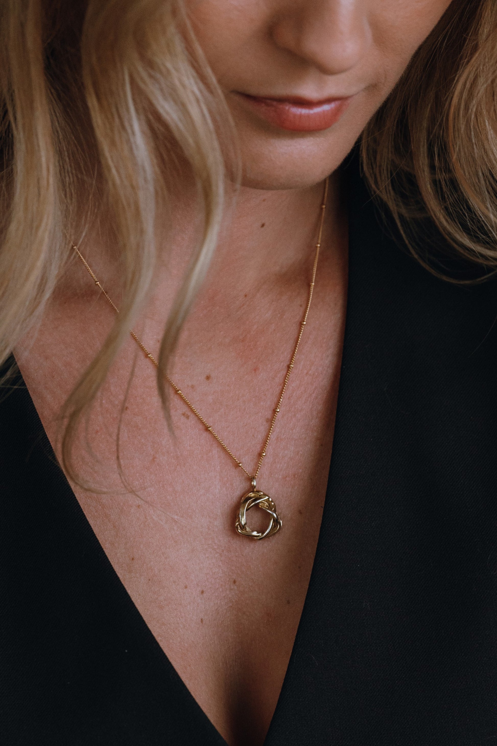 The Entwine Necklace. The design of this necklace was inspired by ancient Celtic knots. -With no beginning or end, the looped pattern goes on infinitely, which symbolises the eternity of life and the connections between us.