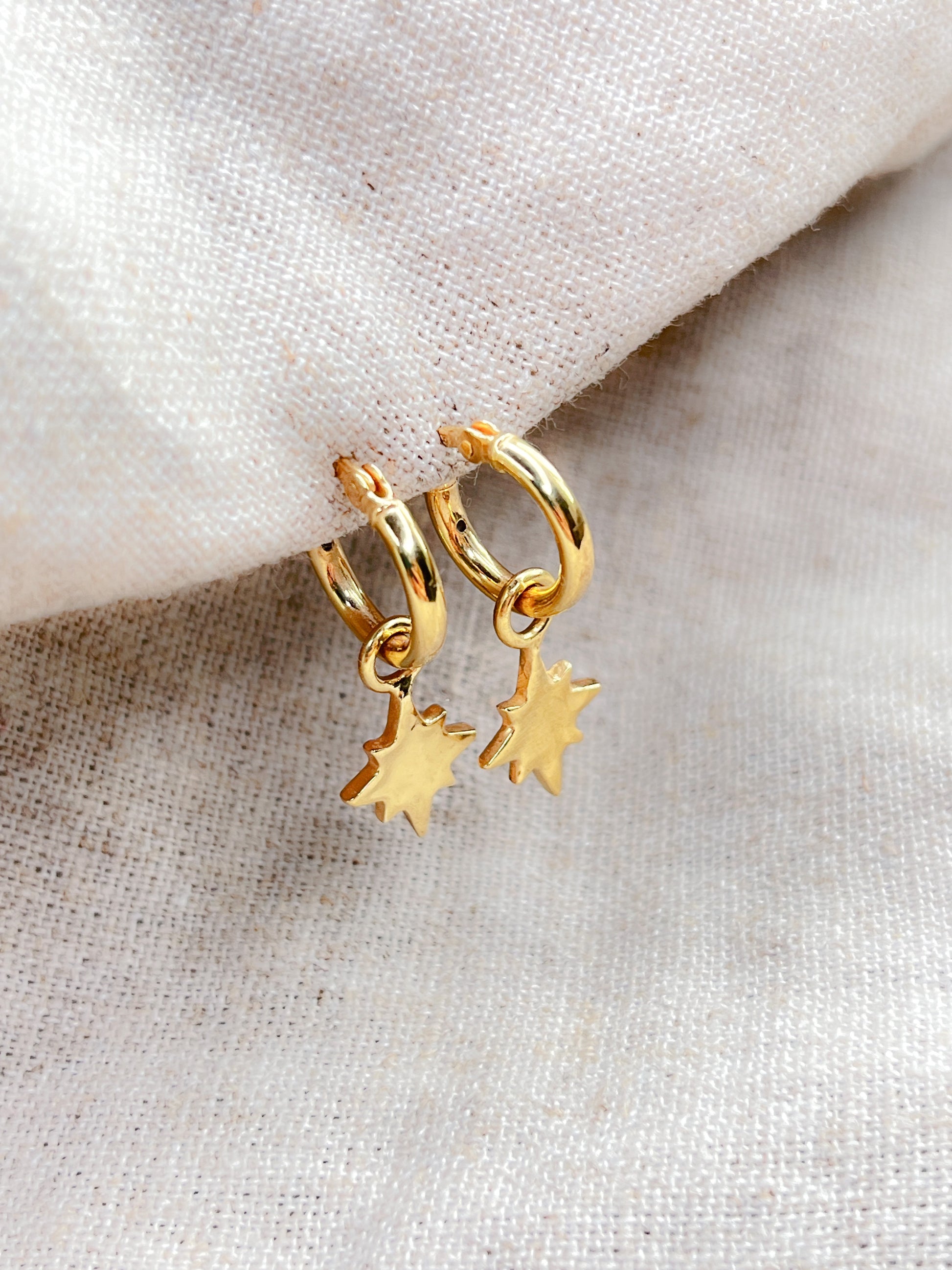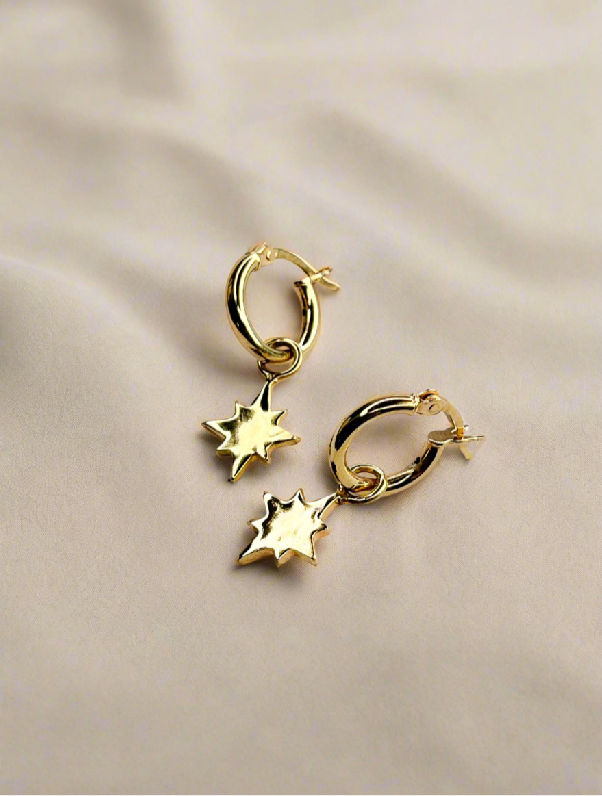 Timeless charm hoop earrings depicting the north star which symbolises guidance and protection. I designed these as a symbol to empower the wearer. These gorgeous hoop earrings also come with their own special affirmation card. Making them the perfect gift for someone special.