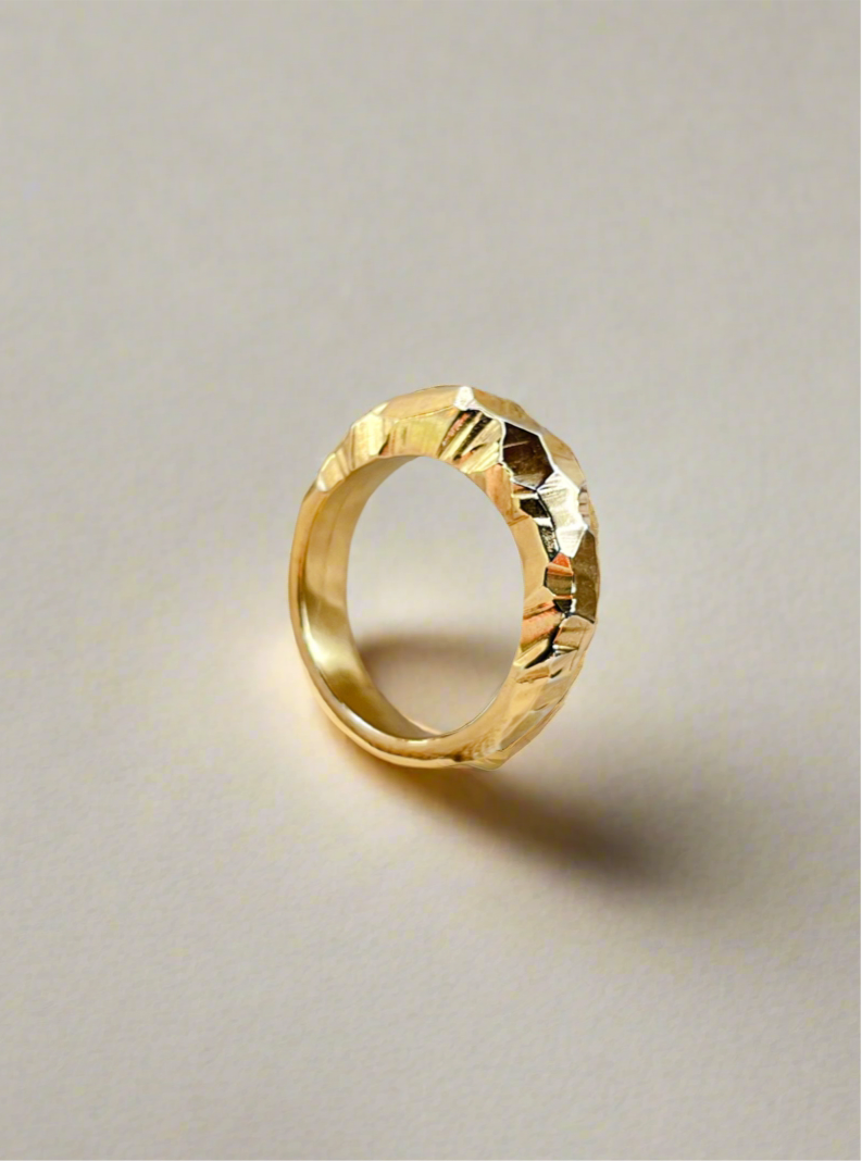 Unique faceted design ring that catches the light beautifully. Intricately carved from jewellers wax and then casted in to solid sterling silver.