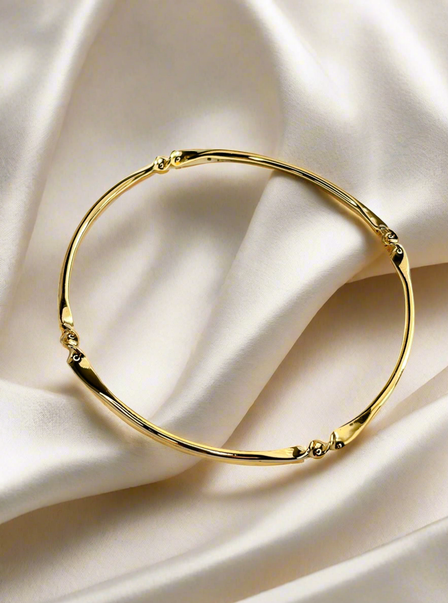 A timeless bangle with beautiful twist detail that looks like the metal is almost flowing. This bangle comes with it's own very special meaning card, created to bring positivity and empowerment to the wearer.