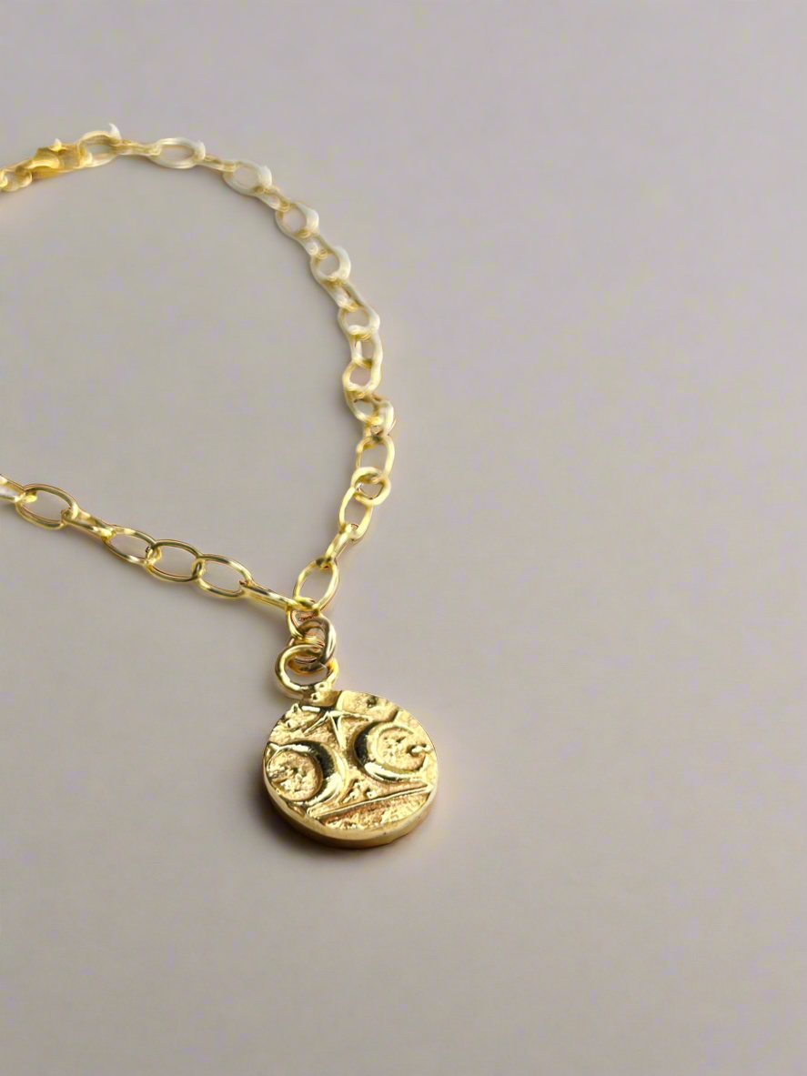 I have designed this charm to look like an ancient coin, depicting 2 crescent moons, which symbolise female empowerment. It also comes with it's own little affirmation card: