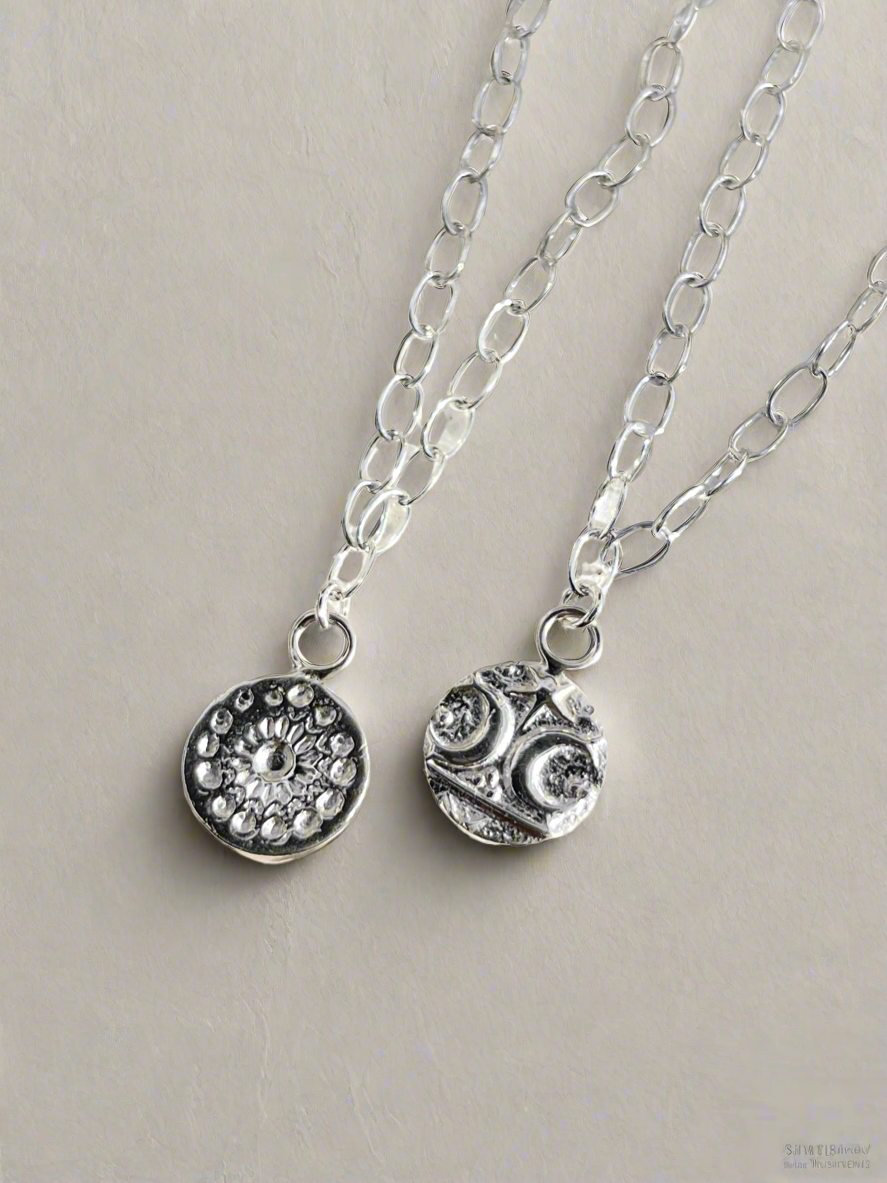 - Each charm is entirely handmade and measures approx 1.2cm diameter and has an organic and raw finish like an ancient coin