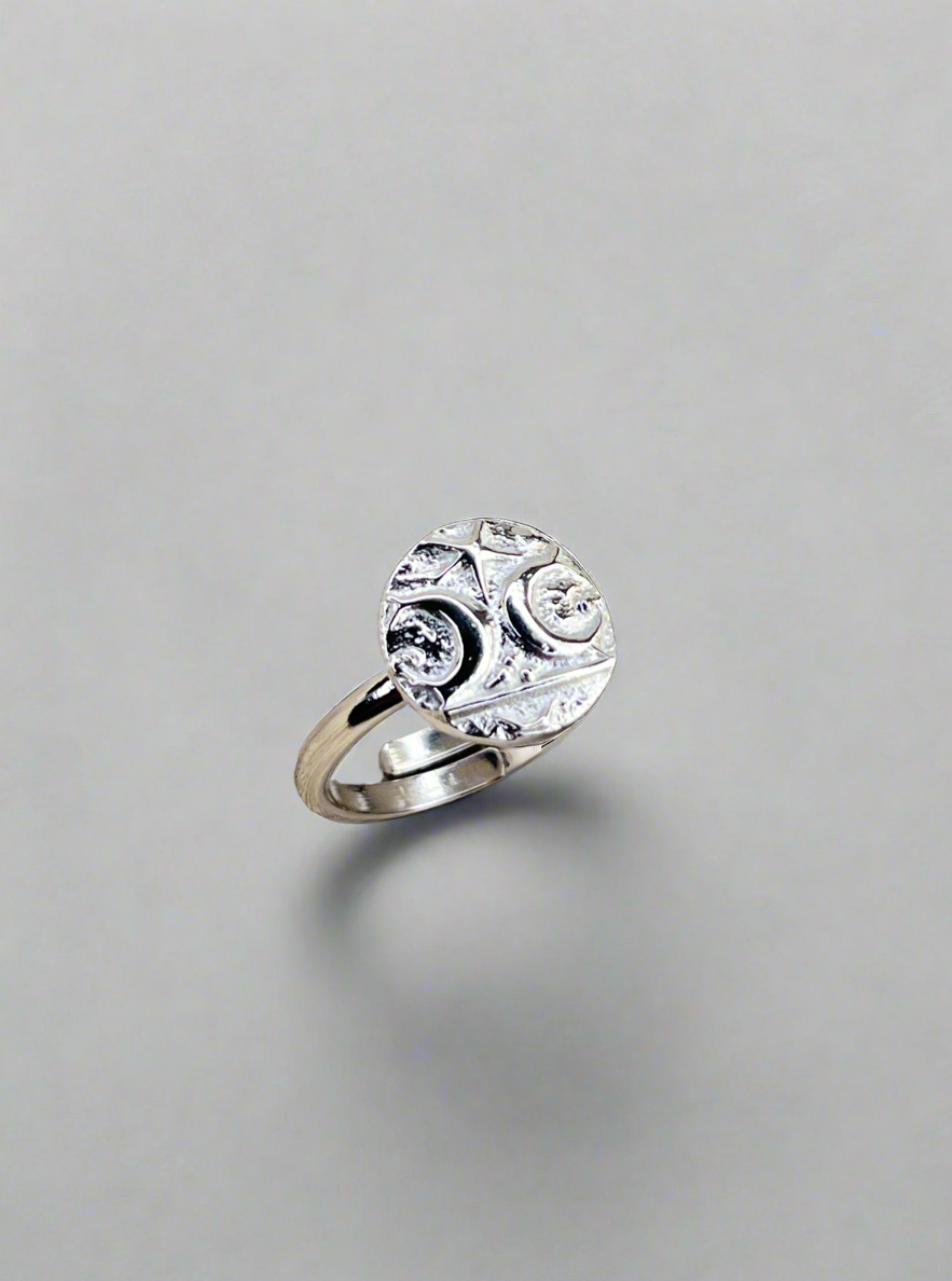 I have designed this ring to look like an ancient coin, depicting 2 crescent moons, which symbolise female empowerment. It also comes with it's own little affirmation card:
