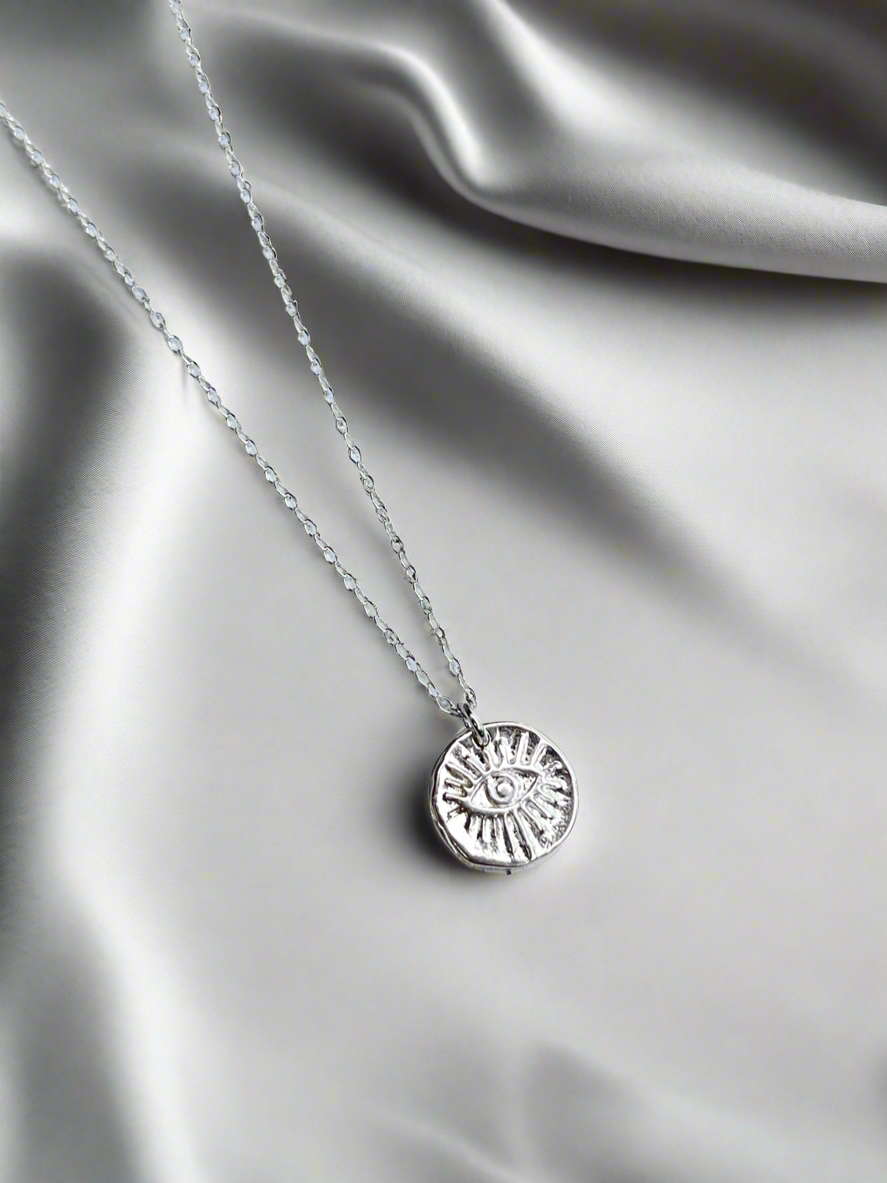 Sterling Silver Ancient Eye Luck Coin Necklace