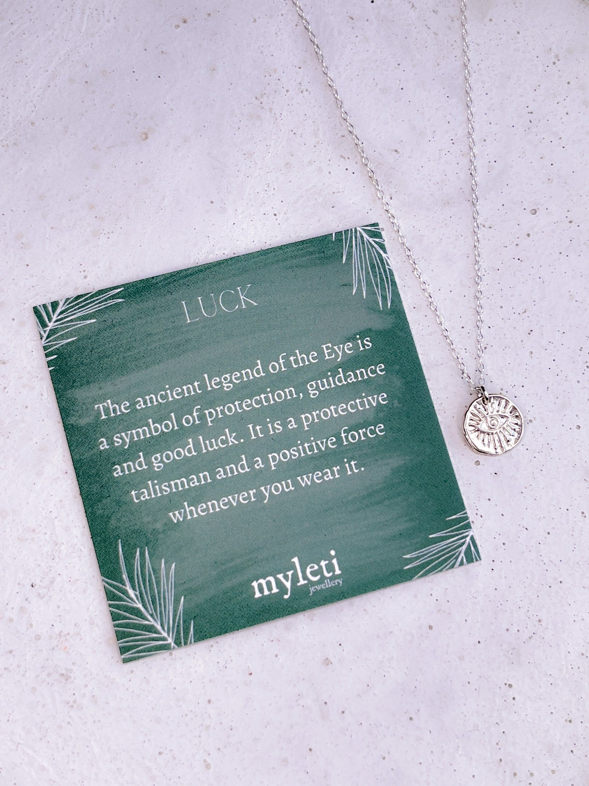 "The ancient legend of the eye is a symbol of protection, guidance and good luck. It is a protective talisman and a positive force whenever you wear it".