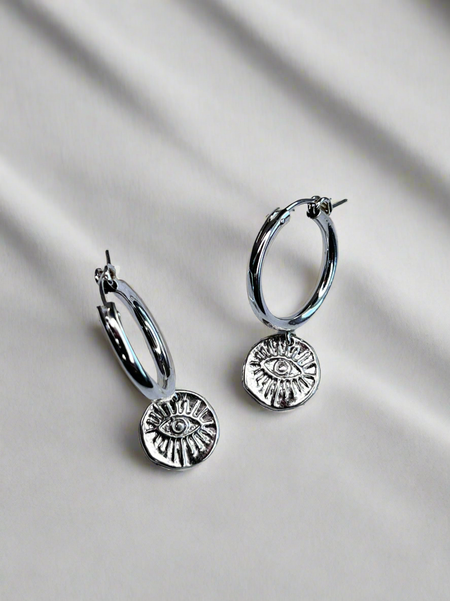 Sterling Silver Ancient Eye Luck Hoop Earrings