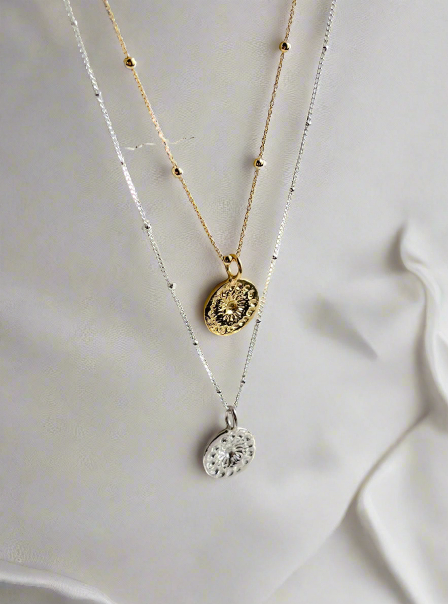 - On a beautiful sterling silver or gold vermeil beaded chain.