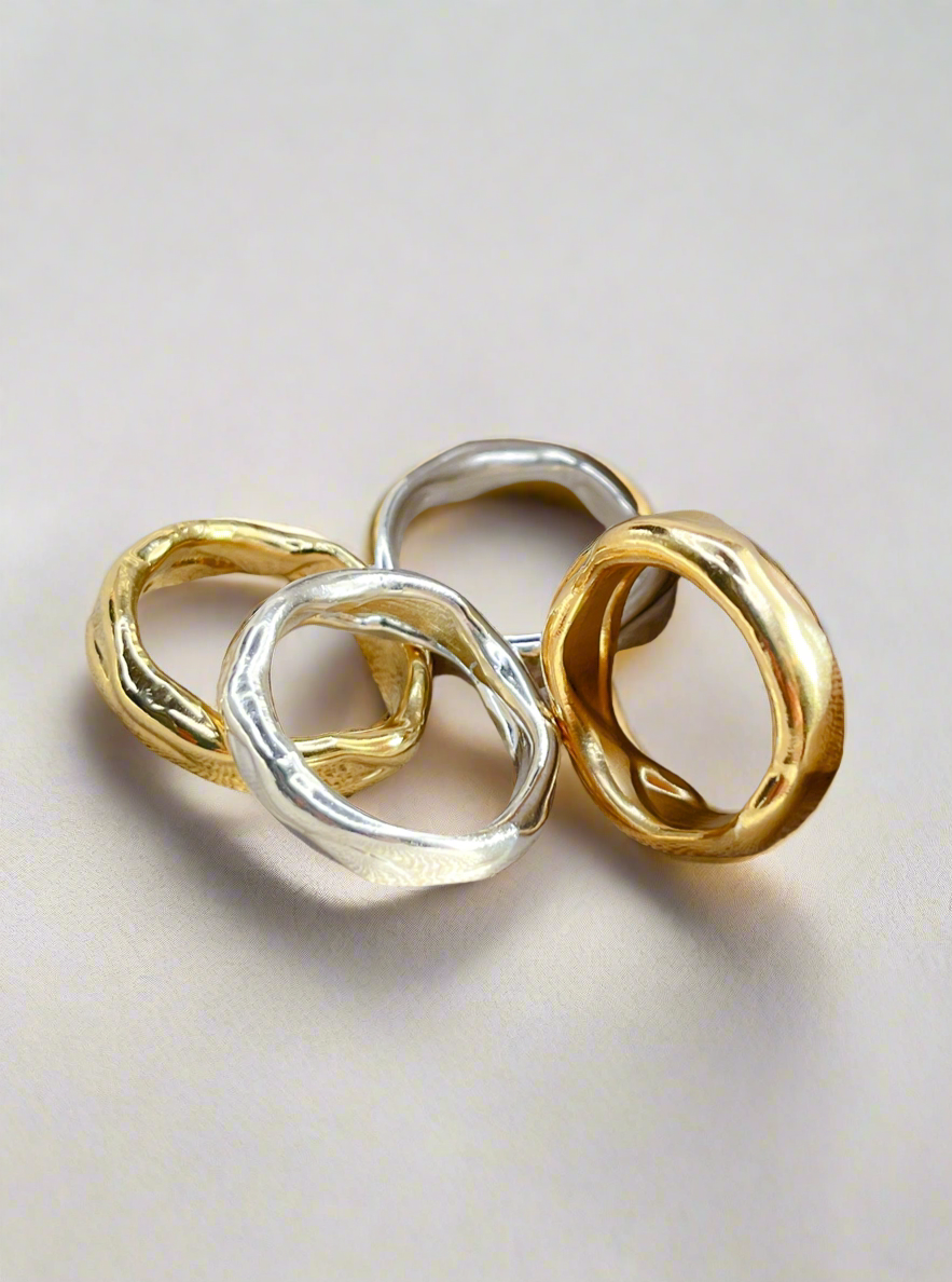 Sterling Silver & Gold Vermeil Unique Molten Flow Rings