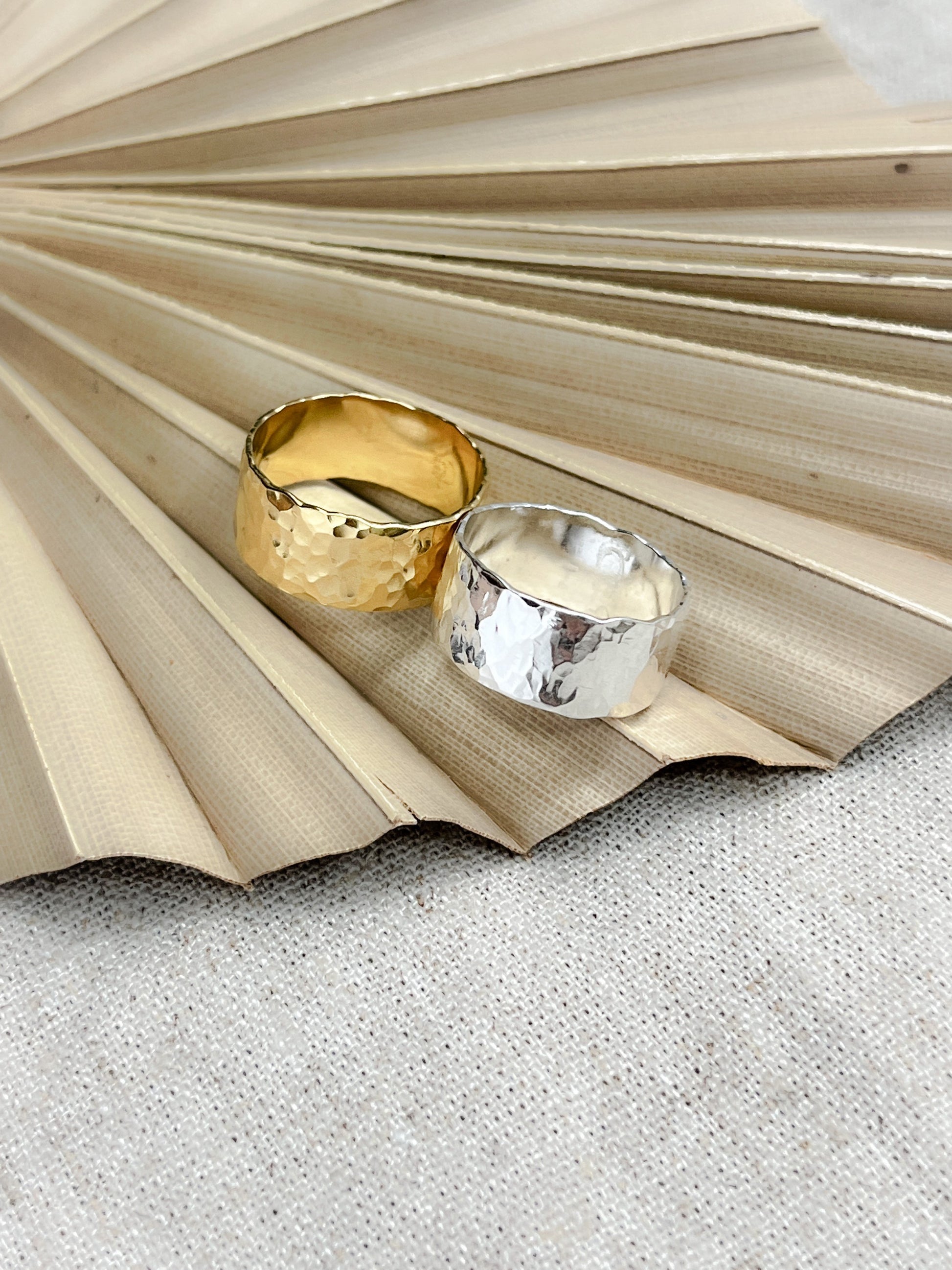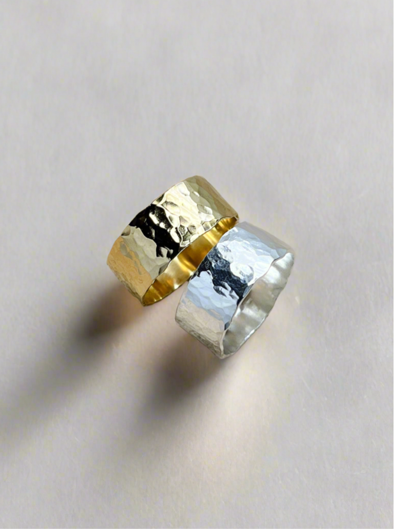 Sterling Silver & Gold Vermeil Wide Hammered Statement Band Ring