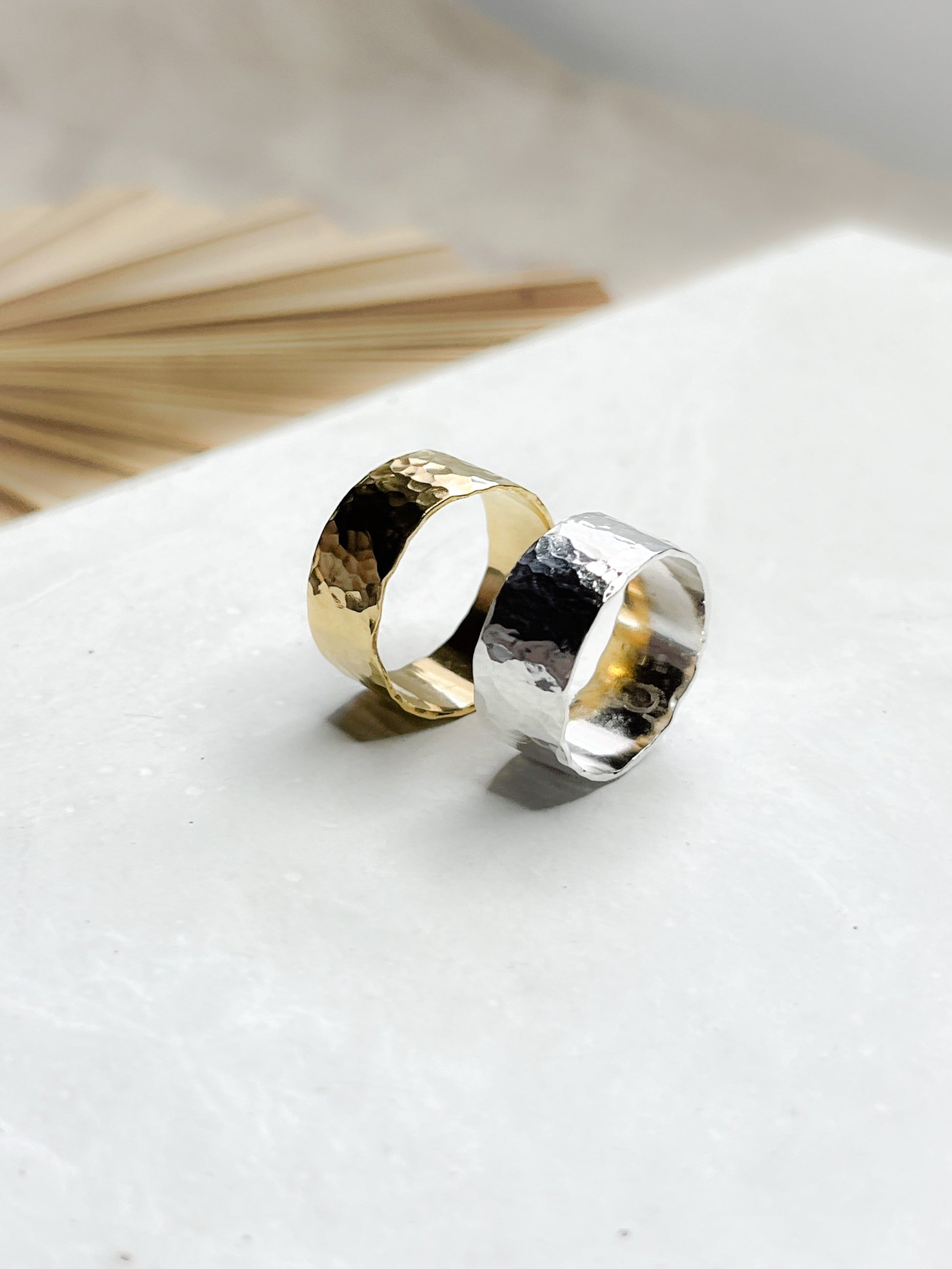 A simple and timeless statement ring that will be a treasured piece. Handcrafted with a wide band and a hammered surface texture that really catches the light. A classic ring that you'll want to wear every day.