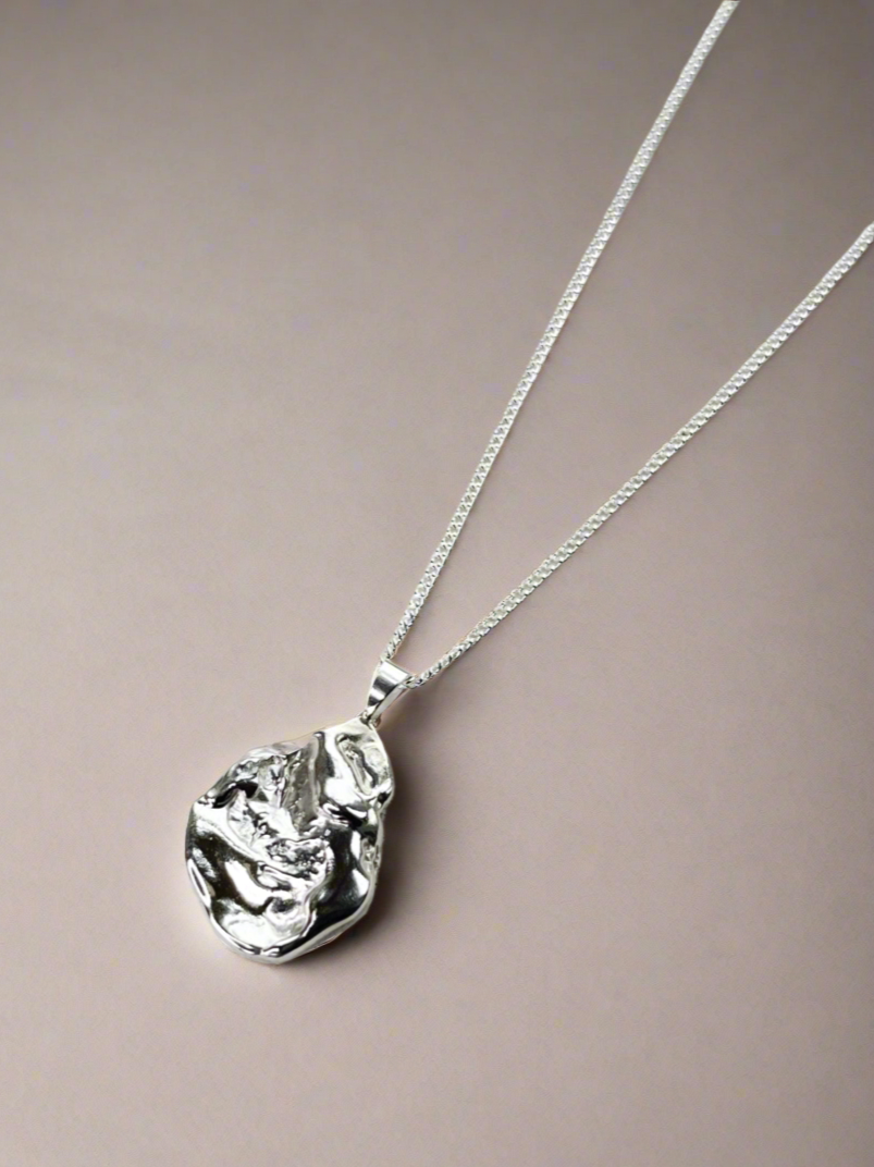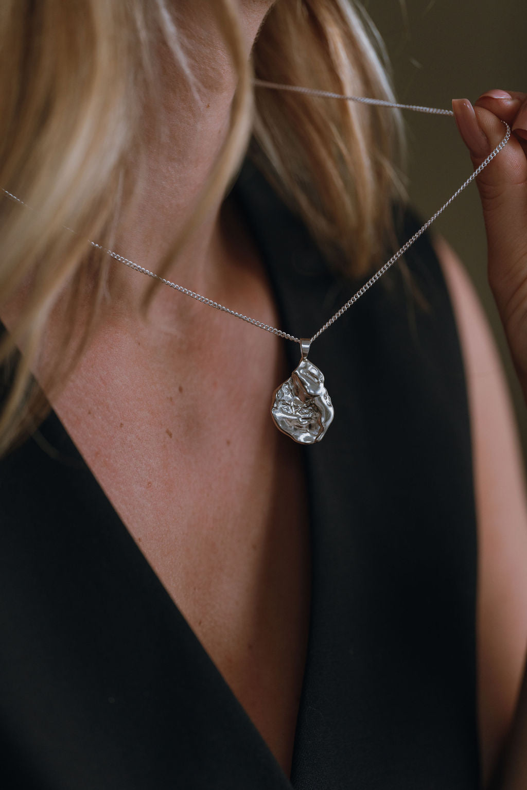 The Strength Necklace. The organic textured surface of this pendant was inspired by the strong but calming nature of the sea.