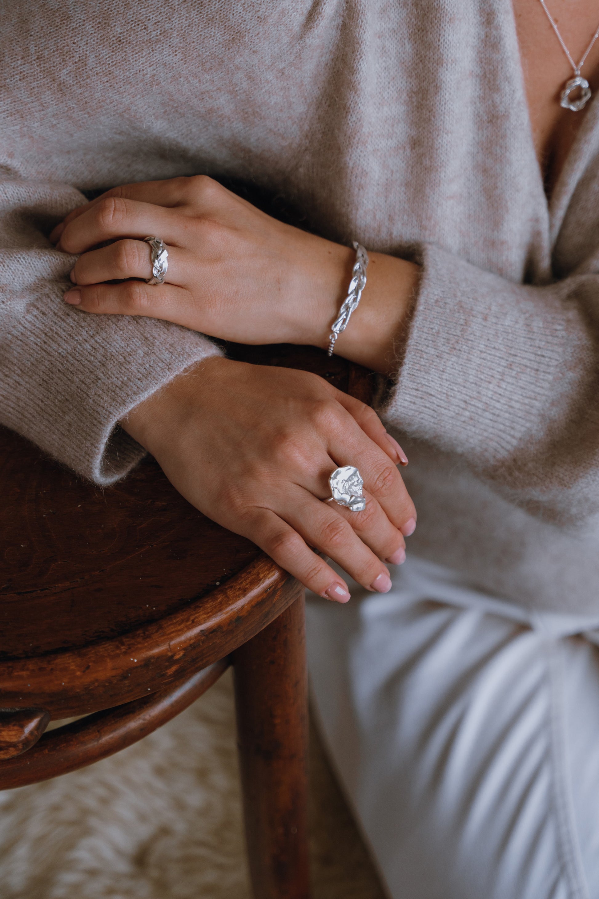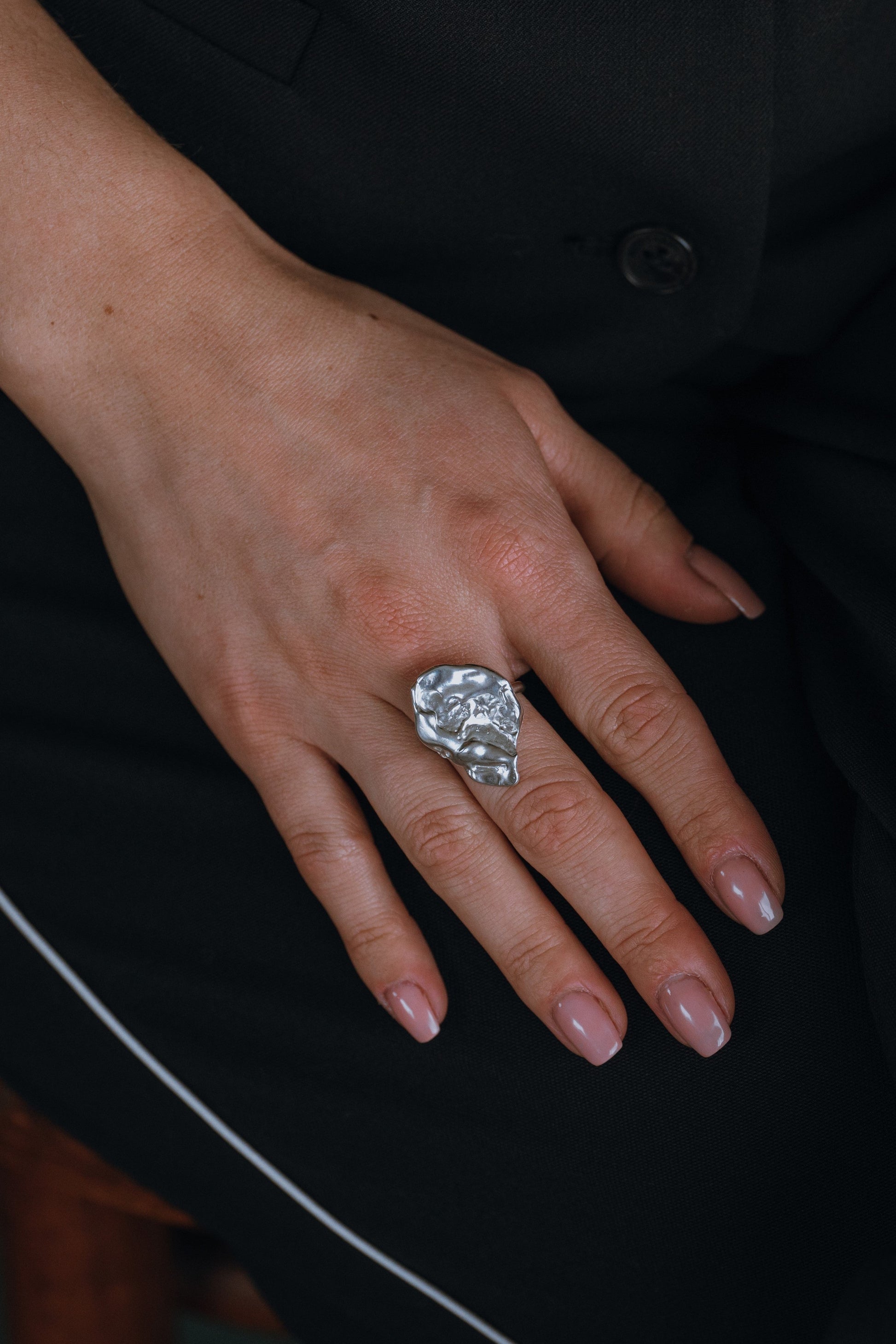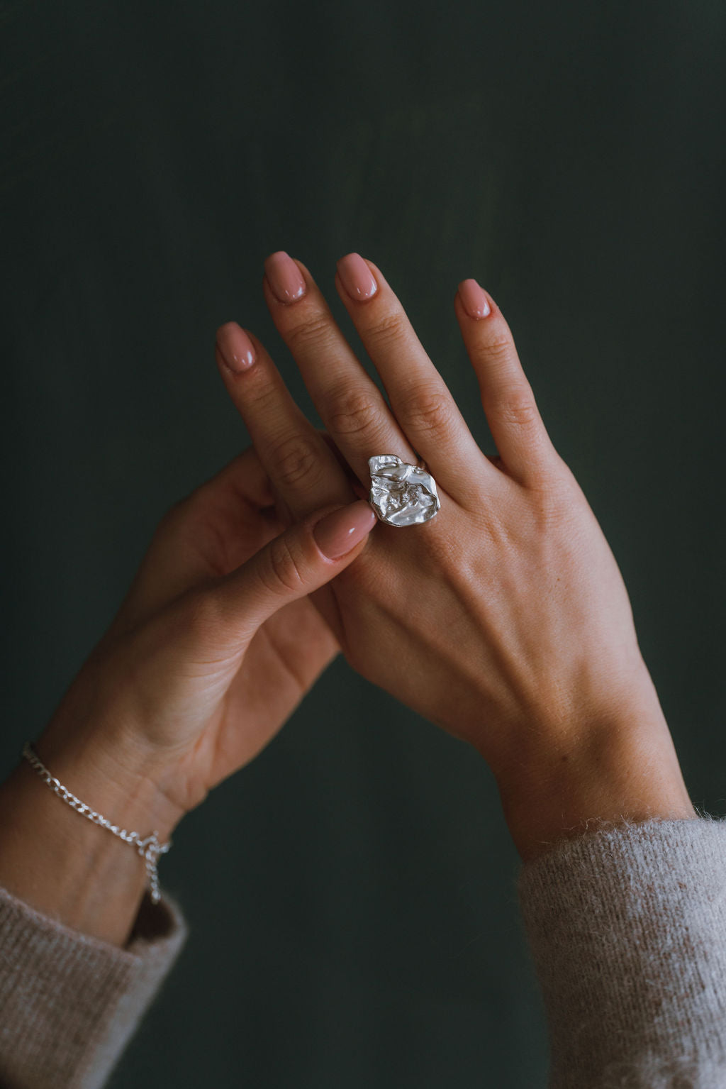 The Strength Ring. The organic textured surface of this ring was inspired by the strength and calming nature of the sea. "I am at my strongest when I am calm."